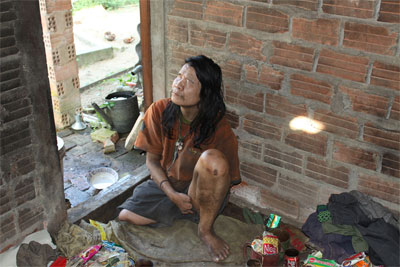 Đến huyện Bình Sơn, chúng tôi tìm về gia đình “dị nhân” Võ Đức Quốc, 50 tuổi, người xóm Phú Hạ, xã Bình Chương. Sở dĩ gọi anh là “dị nhân”, bởi anh hòa bột xi măng uống mà không hề hấn gì; thậm chí anh uống cả thuốc trừ sâu cũng không chết.