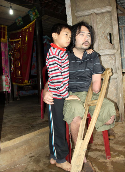 Anh Trần Công Hiếu và đứa con trai 7 tuổi vẫn mang trong mình nỗi buồn sâu thẳm, kể từ ngày anh bị tai nạn do bom mìn.