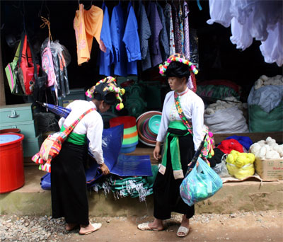 Chợ Tết – phiên chợ tổng kết, phiên chợ hân hoan mang nhiều ý nghĩa mà trong đó rõ nhất là đóng lại cái cũ, mở ra những điều mới, những may mắn mới và cũng là một thước đo sự thành công hay thất bại của người dân trong một năm. Sau một năm vất vả với từng đường cày, nhát cuốc với cả sự vật lộn chống lại sâu hại, thời tiết biến đổi bất thường, gia đình anh Lò Văn Quang (bản Nậm Loỏng – xã Nậm Loỏng) cũng có một vụ mùa khá trúng với “thóc đầy nhà, gà đầy sân”. Sắm Tết, anh Quang đưa cả vợ và cậu con trai mới gần 2 tuổi đi chợ. Vợ áo mới, chồng mũ len và cậu ấm của gia đình anh được mẹ cha tặng riêng cho một chiếc “điện thoại siêu nhân” (đồ chơi). Nhìn cảnh họ chọn đồ, trả tiền rất thoải mái cũng đoán được phần nào niềm hạnh phúc đó.