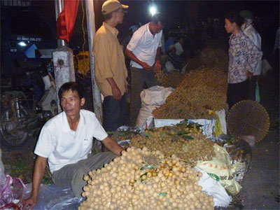 Một người phụ nữ chạc tuổi 30, có vẻ mặt khắc khổ, những nếp nhăn đã xuất hiện nơi khóe mắt. Chắc cõ lẽ vì cuộc sống lam lũ đã khiến chị già hơn nhiều so với tuổi của mình. Chị tên Xoan quê ở Hải Dương, ra đây bán hoa quả khi mới 23 tuổi, bây giờ đã được gần chục năm. Vừa phân loại các mặt hàng nông sản, chị vừa nói: “Làm thì vất vả lắm nhưng cũng chẳng được bao nhiêu đâu. Ngày khá thì để dư ra được vài đồng gửi về quê cho gia đình, còn không thì cũng chỉ đủ chi tiêu trong ngày”.