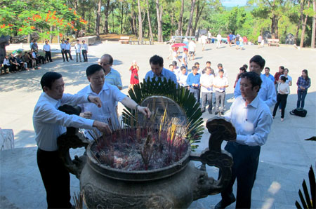 Bộ trưởng Bộ Tài chính Đinh Tiến Dũng cùng đoàn công tác thắp hương tại Nghĩa trang Liệt sĩ Trường Sơn. Ảnh: Dương Tử.