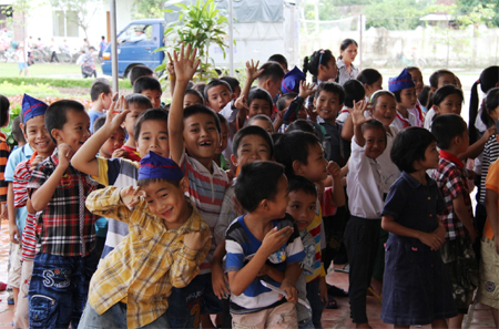 Học sinh Trường Tiểu học Nghi Phương tập văn nghệ chuẩn bị cho Đêm Trung thu 2013.