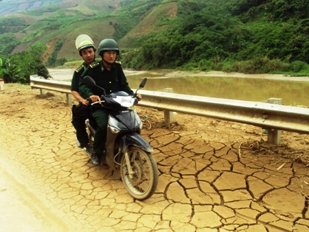 | Trung úy Nguyễn Đức Duẩn và Thiếu úy Nguyễn Văn Hợi trên đường đến cửa khẩu Ma Lù Thàng tác nghiệp |