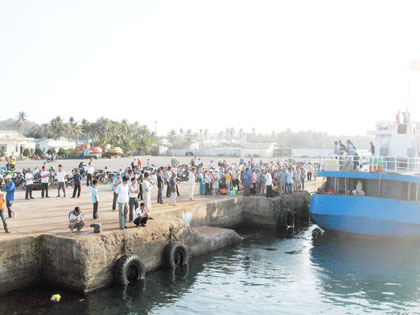 | Người dân trên đảo Phú Quý đón người thân từ đất liền ra. Ảnh: Phú Hưng. |
