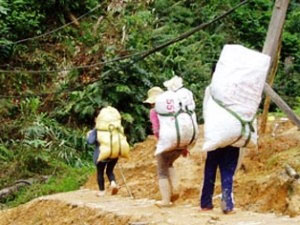 Một đội quân "cửu vạn" đang vận chuyển hàng (Ảnh: HQ/Vietnam+)