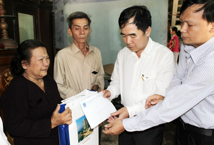 | Cán bộ Tập đoàn Dầu khí Quốc gia Việt Nam tặng quà gia đình liệt sĩ Huỳnh Ánh Đông (Quảng Trị). |