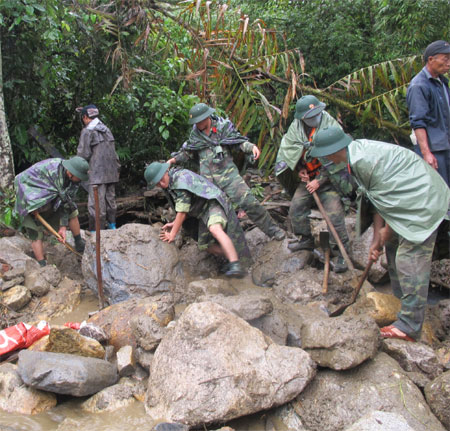 Hơn 300 cán bộ, chiến sĩ dầm mưa giúp dân