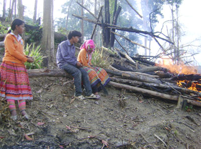 | Một hộ gia đình di cư tự do đốt rừng tại tiểu khu 1176, xã Cư Đrăm, huyện Krông Bông (Đắc Lắc). |