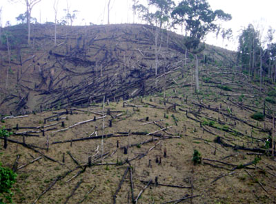 | Hàng trăm héc ta rừng vừa bị tàn phá tan hoang lấy đất trồng sắn ở Cư Đrăm. |