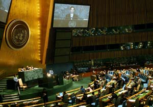 Chủ tịch nước Nguyễn Minh Triết phát biểu tại khóa họp 64 Đại hội đồng Liên hợp quốc ngày 25-9. Ảnh: TTXVN