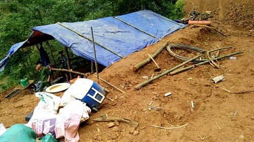 Lều lán phục vụ quá trình “lấy mẫu” của Công ty Cổ phần Khoáng sản Hòa Bình. Ảnh: Ngọc Quý