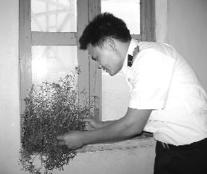 Chậu hoa mười giờ trên đảo chìm Len Đao được đặt ngay cửa sổ phòng chỉ huy.