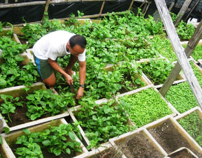 | Lính đảo Đá Lát chăm sóc những luống rau xanh. |