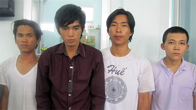 Bốn tên cướp bị bắt giữ trong vụ chém cô gái giật túi xách ở quận 2, TP Hồ Chí Minh. Ảnh: Công An