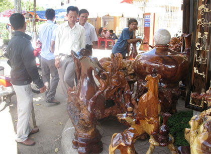 Anh Minh Tâm, chủ cơ sở mỹ nghệ gỗ ở khối 2, phường Khánh Xuân, thành phố Buôn Ma Thuột có gian hàng Tết trưng bày tại đường Trần Hưng Đạo tâm sự: “Gian hàng của mình trưng bày gần 100 tác phẩm, chủ yếu được chế tạo từ nguyên liệu là các loại gỗ quý hiếm như: thủy tùng, cẩm lai, cà te, giáng hương. Hiếm nhất là gỗ thủy tùng (thông nước) hiện chỉ tỉnh Đắc Lắc mới có, với số lượng cá thể rất ít ỏi. Cũng vì thế mà những sản phẩm gỗ mỹ nghệ của cơ sở tôi có giá khá cao, từ và triệu đến cả trăm triệu đồng, tùy theo chất liệu gỗ và độ tinh xảo của tác phẩm. Trong đó, hai tác phẩm có giá cao nhất là lục bình chế tác bằng nu cà te, có đường kính 80cm, chiều cao 60cm được xếp và loại hàng "độc", có giá 100 triệu đồng/tác phẩm, gồm cả đế bằng gỗ giáng hương. Mặc dù xếp vào hàng độc, nhưng khách hàng của những sản phẩm có giá tới trăm triệu đồng cũng khá đông, phần lớn là các đại gia đến từ thành phố Hồ Chí Minh và Hà Nội”.