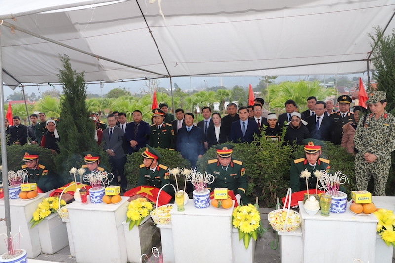 | Phần mộ liệt sĩ được an táng trong đợt tìm kiếm, quy tập tại Nghĩa trang Liệt sĩ Vị Xuyên. Ảnh: VĂN NGHỊ |