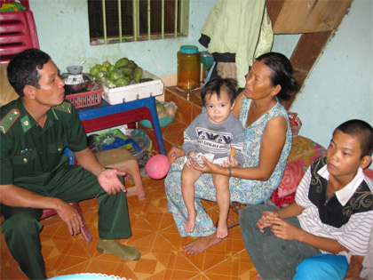 Bà Tý kể, nhà nghèo, vợ chồng lam lũ quanh năm mà chẳng đủ ăn, mấy đứa con không có điều kiện đến trường. Cháu Phong (sinh năm 1996) người gầy nhom. Do không biết đọc, biết viết nên Phong tự ti, ngại tiếp xúc với người ngoài. Thương con, vợ chồng bà cũng chỉ biết khóc thầm. Cứ tưởng cuộc đời thằng bé sẽ âm thầm như đá… bỗng có một ngày thấy một chú bộ đội biên phòng đến tận nhà tìm gặp cháu Phong. Buổi đầu thấy người lạ cháu không dám tiếp xúc. Mấy ngày sau chú ấy lại tới. Chẳng biết chú ấy nói những gì mà Phong phấn chấn hẳn, rồi xin mẹ cho đi theo chú Tưởng để học cái chữ.