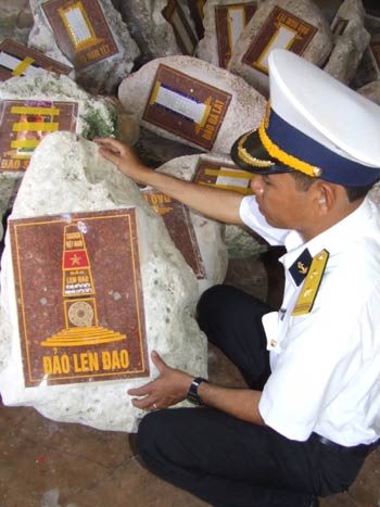 | Biểu tượng mốc chủ quyền đảo Len Đao do bộ đội Trường Sa gửi tặng đất liền |