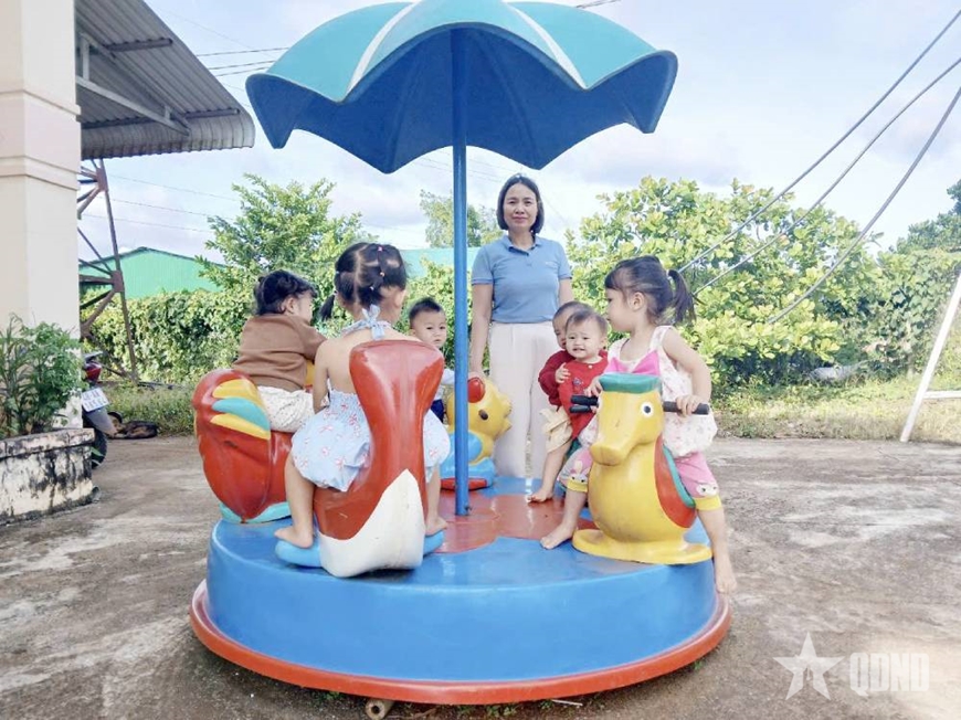 Cô tâm sự: “Mỗi ngày đến trường, nghe tiếng trẻ cười, thấy chị em phụ nữ trong đơn vị đoàn kết, tiến bộ, tôi lại có thêm động lực để cố gắng. Với tôi, được đóng góp dù nhỏ thôi cũng là niềm hạnh phúc”.