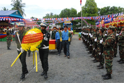 Trong Lễ tiễn đưa hài cốt liệt sĩ quân tình nguyện và chuyên gia Việt Nam về nước được tổ chức trọng thể tại tỉnh Can-đan đã có hàng ngàn người đại diện cho chính quyền, quân đội, sư sãi, học sinh, sinh viên và bà con nước bạn đến dự. Phát biểu tại buổi lễ, ông Sun Si Run, Tỉnh trưởng tỉnh Can-đan bày tỏ lòng biết ơn đối với các anh hùng liệt sĩ của Việt Nam. Ông kể lại những thảm kịch dưới chế độ Khơ-me đỏ, nhắc mọi người nhất là thế hệ trẻ hôm nay được sinh ra trong hòa bình phải luôn luôn ghi nhớ công ơn to lớn của nhân dân và Quân đội nhân dân Việt Nam anh em.