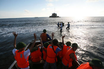 Đoàn chúng tôi may mắn có một đêm ngủ lại ở đảo Tiên Nữ. Ánh trăng trên biển đẹp lạ lùng. Những quầng sáng lung linh đổ dập dìu theo từng con sóng như đang dắt díu nhau kéo về phía đảo. Ánh trăng, tiếng sóng biển và những câu chuyện huyền thoại cứ chập chờn trong giấc ngủ của các “vị khách” trên đảo Tiên Nữ. Sáng hôm sau tôi choàng tỉnh vì tiếng kẻng báo thức. Nhìn đồng hồ, tôi ngạc nhiên vì mới 5 giờ. Ngoài kia, bình minh đã đang lên. Thiếu tá Vũ Minh Thân, Trợ lý tác huấn Đoàn Trường Sa giải thích: