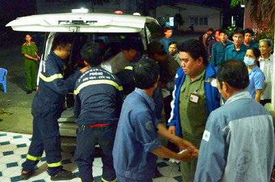 Lực lượng tìm kiếm, cứu nạn đưa thi thể nạn nhân vào Bệnh viện đa khoa Cần Giờ.