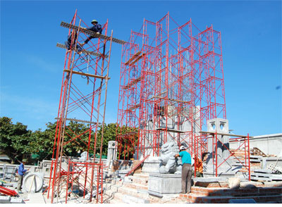 Tượng đài liệt sĩ đang được thi công tại thị trấn Trường Sa.