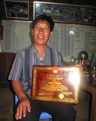 Ông Sùng A giống và chiếc Bằng khen do TW Hội khuyến học Việt Nam trao tặng.