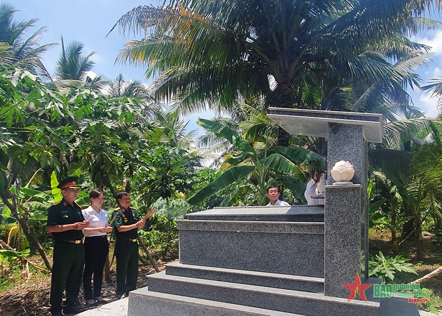 | Đoàn đến dâng hương tại phần mộ gia đình đã nuôi giấu cán bộ cách mạng của Đảng trong kháng chiến. |