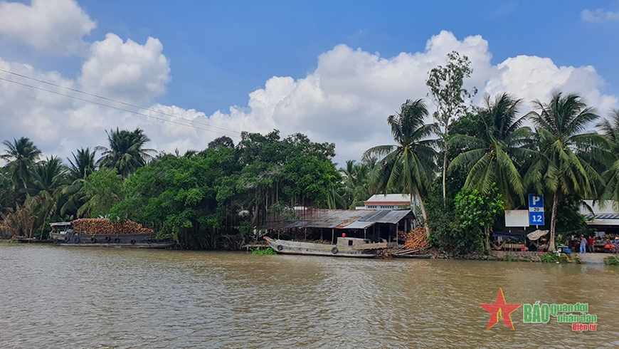 | Cảnh sinh hoạt “trên bến dưới thuyền” của người dân xã Đức Mỹ. |