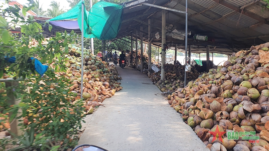 | Sản phẩm lao động của người dân Đức Mỹ chủ yếu là dừa. |