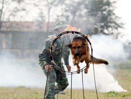 “Trinh sát bốn chân” dũng mãnh vượt qua vòng lửa