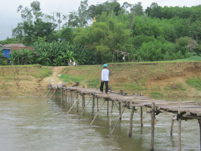 | Chiếc cầu tạm mới làm xong để học sinh và người dân qua lại thuận tiện hơn. |