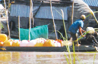 Chúng tôi quay trở lại các điểm nóng buôn lậu xăng dầu ở biên giới Tây Nam thuộc tỉnh An Giang ngay trong buổi trưa 24-2 là thời điểm xăng dầu trong nước đồng loạt tăng giá. Dưới cái nắng gay gắt ở vùng biên, đội quân vận chuyển xăng dầu bằng xe máy từ các cửa hàng, cây xăng trên quốc lộ 91 đoạn thuộc thị trấn Tịnh Biên (H.Tịnh Biên, An Giang) vẫn ào ào lao đi. Từng tốp 2 đến 3 xe máy, mỗi xe chở 3-4 can nhựa loại 30 lít đầy ắp xăng, dầu lao vút trên con đường nhựa rộng thênh thang, cặp chợ biên giới Tịnh Biên rồi về đổ hàng ở bãi tập kết trên bờ kênh Vĩnh Tế. Mỗi bãi hàng nơi đây có hàng trăm can xăng dầu đầy ắp, còn vỏ can thì nằm la liệt.
