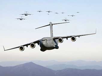 Máy bay vận tải quân sự C-17 Globemaster III đã được nghiên cứu, chế tạo vào cuối năm 80 đầu năm 90 của thế kỷ trước. Chuyến bay đầu tiên của loại máy bay này đã được thực hiện vào năm 1991 và đến năm 1993 thì chính thức đưa vào biên chế. Loại máy bay vận tải này có khả năng chở được 102 binh lính với đầy đủ vũ khí, trang thiết bị kỹ thuật cần thiết, 48 binh lính bị thương, 3 máy bay trực thăng tấn công AH-64 Apache hoặc một vài phương tiện đổ bộ khác.