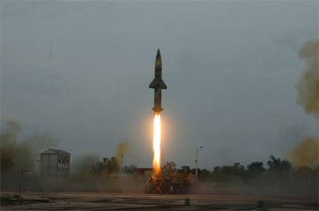 QĐND Online - Sáng 26-9, Ấn Độ đã phóng thử thành công tên lửa đạn đạo tầm ngắn có khả năng mang đầu đạn hạt nhân Prithvi-II. Tên lửa đạn đạo tầm ngắn có tầm bắn đạt 350 km này được phóng từ một bệ phóng di động tại bãi thử Chandipur thuộc bang Orissa.