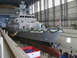 Lễ hạ thủy Khinh hạm Braunschweig tại cơ sở của hãng Blohm + Voss. Ảnh: chính phủ Đức