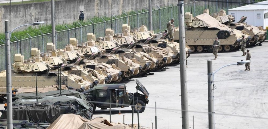 Binh sĩ và thiết bị quân sự tại một căn cứ quân sự của Mỹ ở tỉnh Gyeonggi, Hàn Quốc. Ảnh: The Korea Times