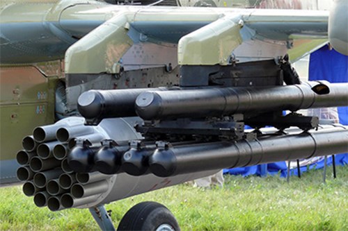 Đạn tên lửa Vikhr-1 lắp dưới cánh máy bay trực thăng Ka-52.