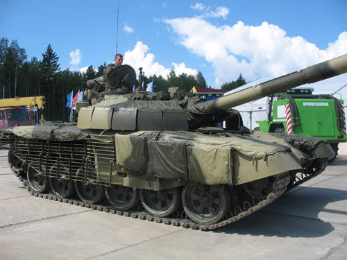 Xe tăng T-80 trang bị lớp vải ngụy trang Nakidka.