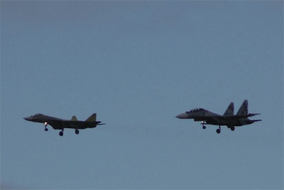 Nguyên mẫu T-50-5 thực hiện chuyến bay thử đầu tiên với sự hộ tống của Su-30MKK.