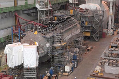 Trang tin Pháp LeMarin đăng tải ngày 7-4 cho biết, xưởng đóng tàu Laubeuf thuộc Tập đoàn DCNS tại Cherbourg đang đóng mới tàu ngầm nguyên tử mang tên Suffren cho Hải quân Pháp.