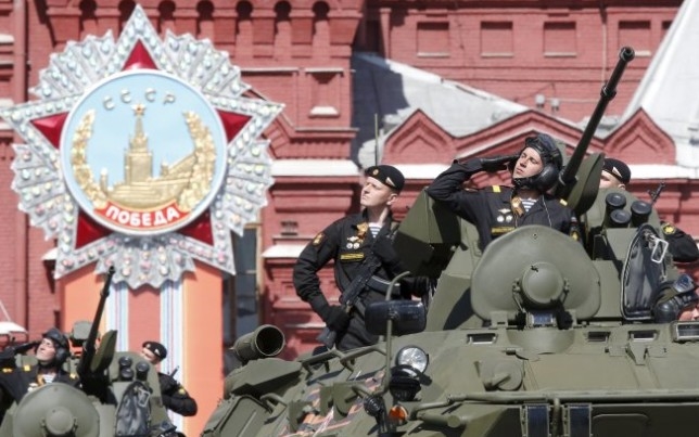 | Đoàn xe thiết giáp Nga trong buổi tập dượt duyệt binh trên Quảng trường Đỏ ở thủ đô Moscow ngày 7-5. Ảnh: Reuters |