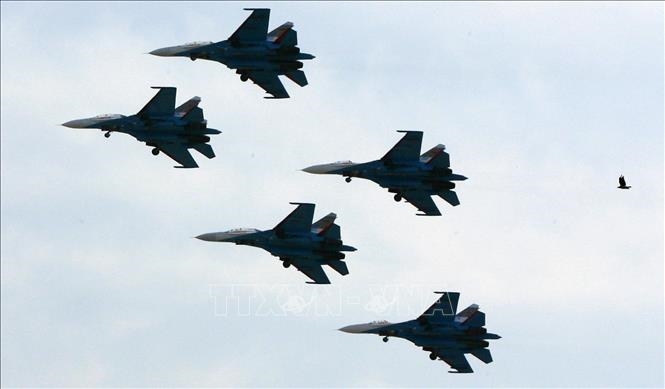 | Máy bay tiêm kích Su-27 của Nga bay trình diễn tại một sự kiện ở thành phố Rostov-on-Don. Ảnh tư liệu: TTXVN |