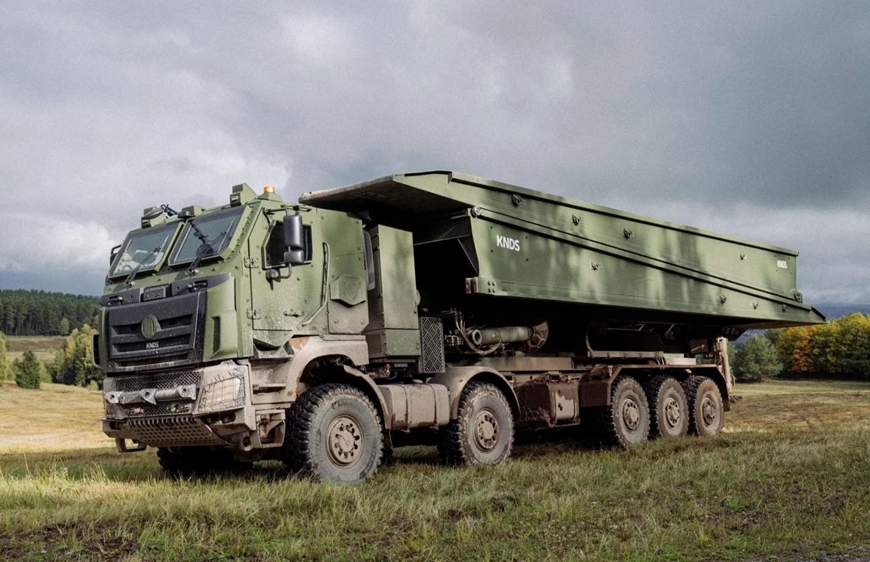 | Hệ thống bắc cầu Leguan mới của Đan Mạch trên xe Tatra 10x10 có thể triển khai cầu dài 26m hoặc 2 cầu đạt chuẩn MLC 80 chỉ trong vài phút Ảnh: KNDS |