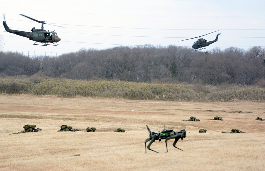 Theo đó, hình ảnh cuộc diễn tập đổ bộ đầu năm mới cho thấy Lữ đoàn dù số 1 kết hợp sử dụng hai “chó robot” Q-UGV (nhiều khả năng là dòng Vision 60) của hãng Ghost Robotics (Mỹ), đánh dấu lần đầu tiên binh lính đổ bộ của Nhật Bản tích hợp trực tiếp phương tiện này vào hoạt động diễn tập giả định.