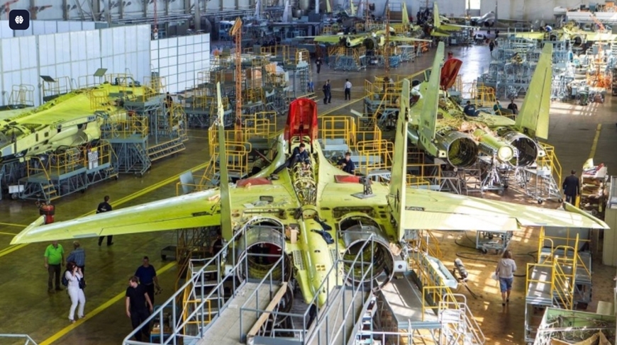 | Dây chuyền sản xuất tiêm kích Su-35 tại Nhà máy sản xuất máy bay Komsomolsk-on-Amur ở vùng Viễn Đông Nga. Ảnh: Militarywatchmagazine |