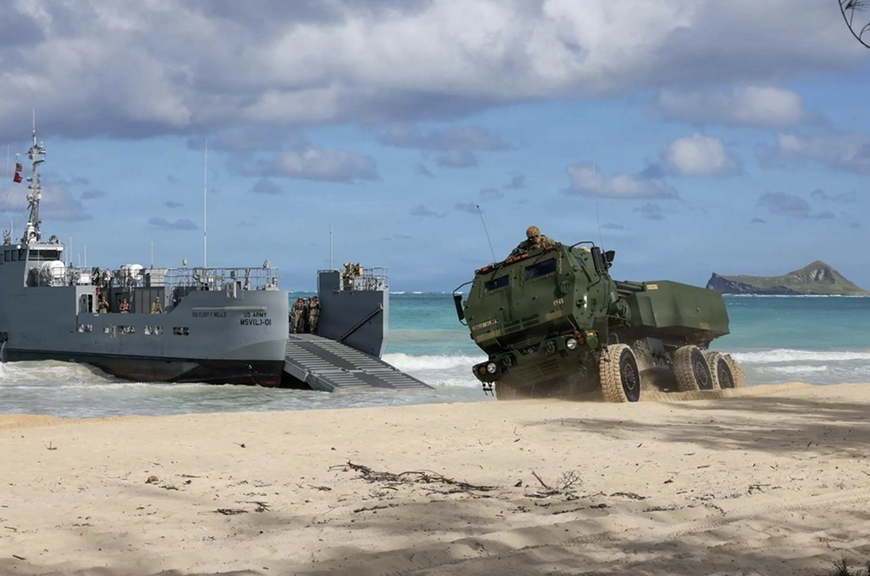 Các đơn vị Lục quân Mỹ tại Hawaii đã tiến hành phương án tác chiến mới trên biển, khi triển khai hệ thống pháo phản lực M142 HIMARS lên tàu đổ bộ hạng nhẹ MSV Light.