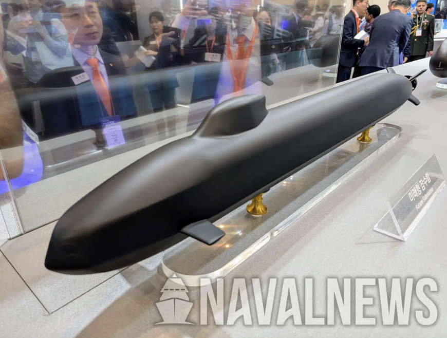 Mô hình tàu ngầm hạt nhân của tập đoàn Hanwha Ocean. Ảnh: NavalNews