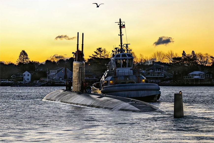 | Tàu ngầm tấn công nhanh lớp Los Angeles của Hải quân Mỹ, USS Cheyenne, đã được nâng cấp, rời xưởng Portsmouth để tiến hành các thử nghiệm trên biển sau đại tu vào tháng 12-2025. Ảnh: Bộ Quốc phòng Mỹ |